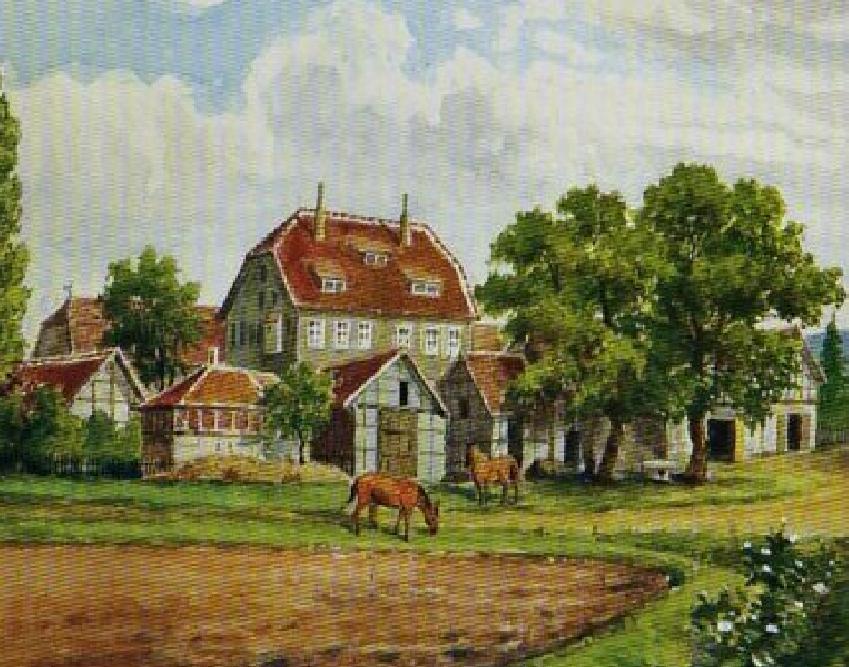 Vor der Stadt lagen die verschiedenen Meiergüter, die oft aus den früheren Feudalhöfen der Ministerialen entstanden waren.., wie das Gut Weidensee, das Gut Sambach (im Bild) und der frühere Ordenshof Pfafferode.
